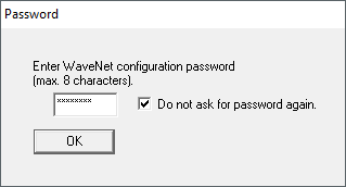Sie können das Passwort nur beim ersten Start des WaveNet-Managers vergeben. Wenn Sie beim ersten Start kein Passwort vergeben, dann können Sie nachträglich kein Passwort mehr vergeben. Das Passwort ist dann leer.