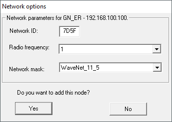 Bereits konfigurierte GatewayNodes haben bereits eine Network ID. Deshalb ist das Feld Network ID ausgegraut.