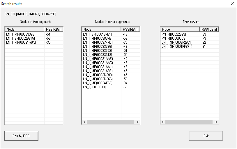 RSSI value | The value displayed refers to the connection quality from the current GatewayNode to the respective LockNodes. |