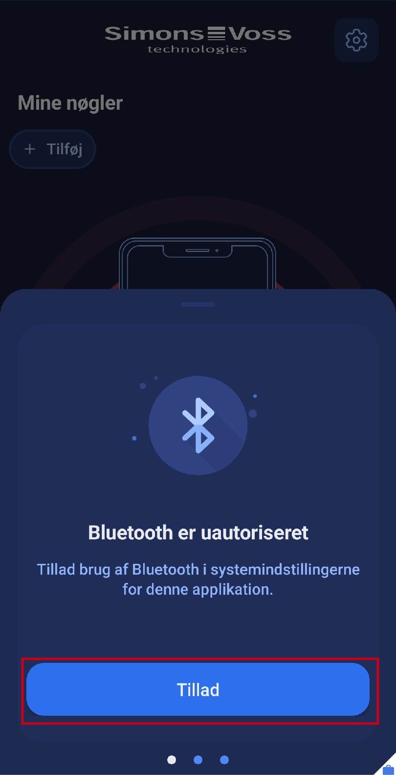 - Tænd for brugen af Bluetooth. For at gøre dette skal du klikke på feltet . Du vil blive sendt direkte til systemindstillingerne på din smartphone, hvor du kan godkende brugen af Bluetooth.