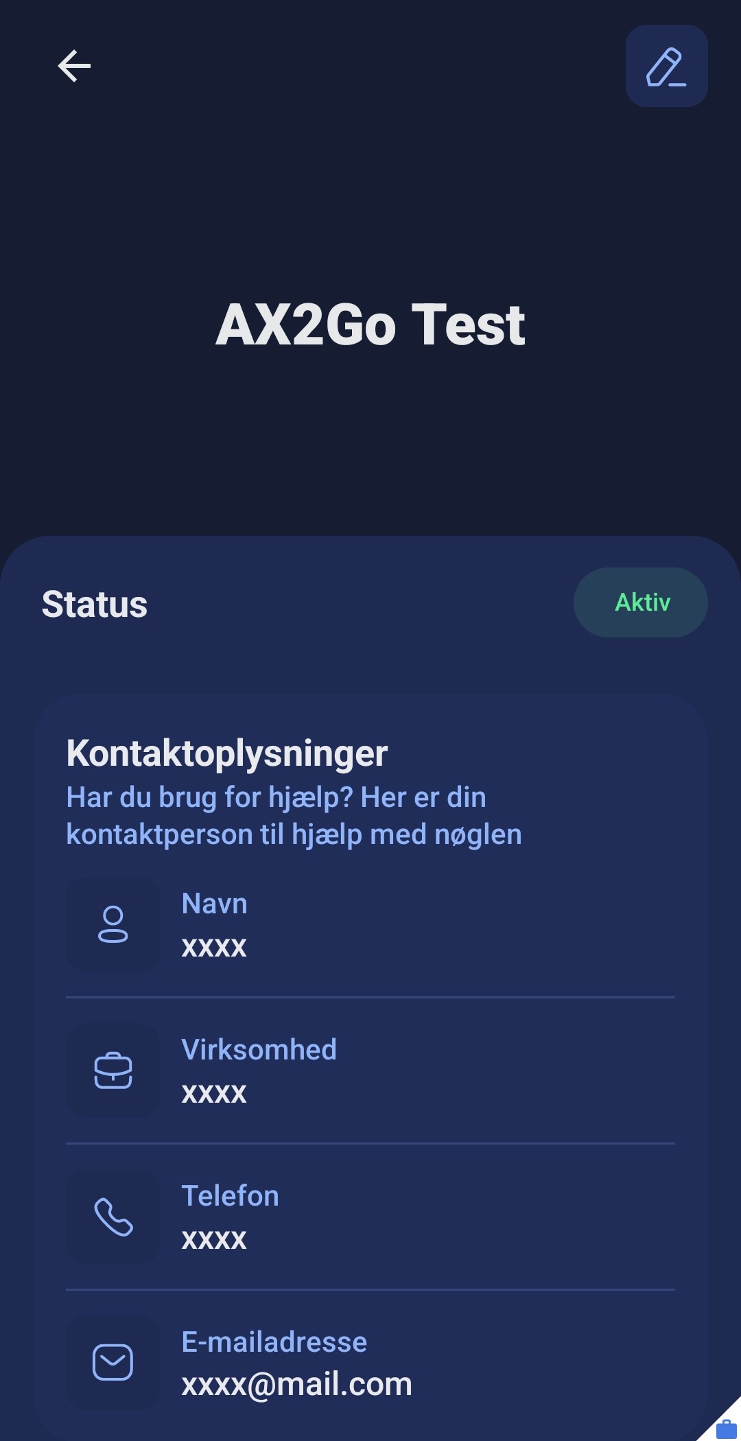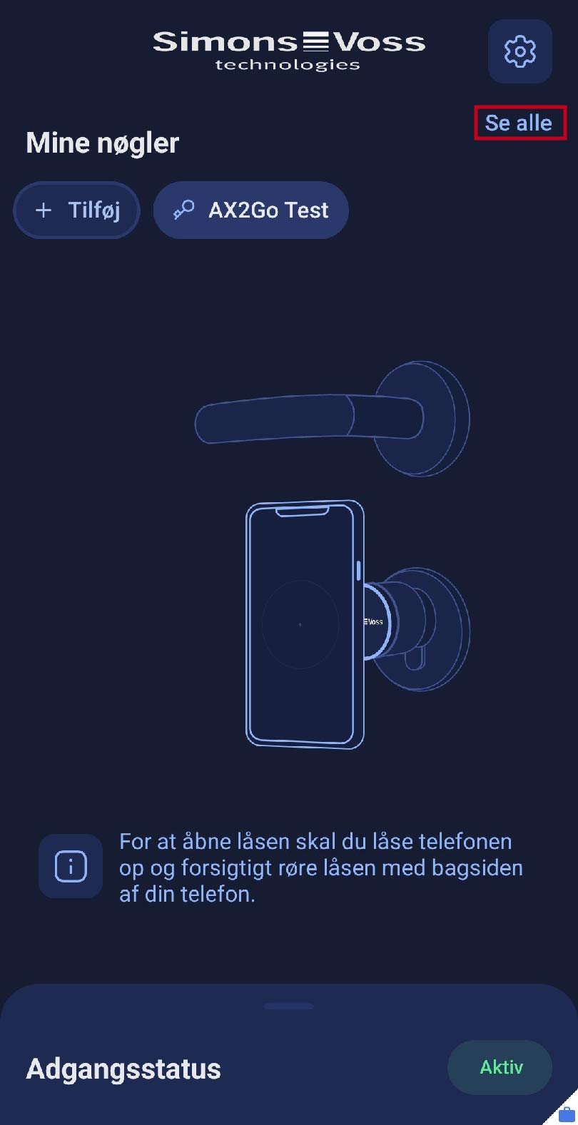 I AX2Go -appen, kan du hente oplysninger om dine nøgler.