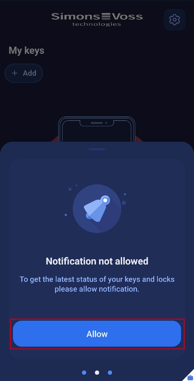 - Notifications must be enabled so that you can receive updates to access authorisations automatically and the app can also be notified in the background in the event of non-authorisation. Click on the field. You will be directed to your smartphone’s system settings, where you can enable notifications for the app.