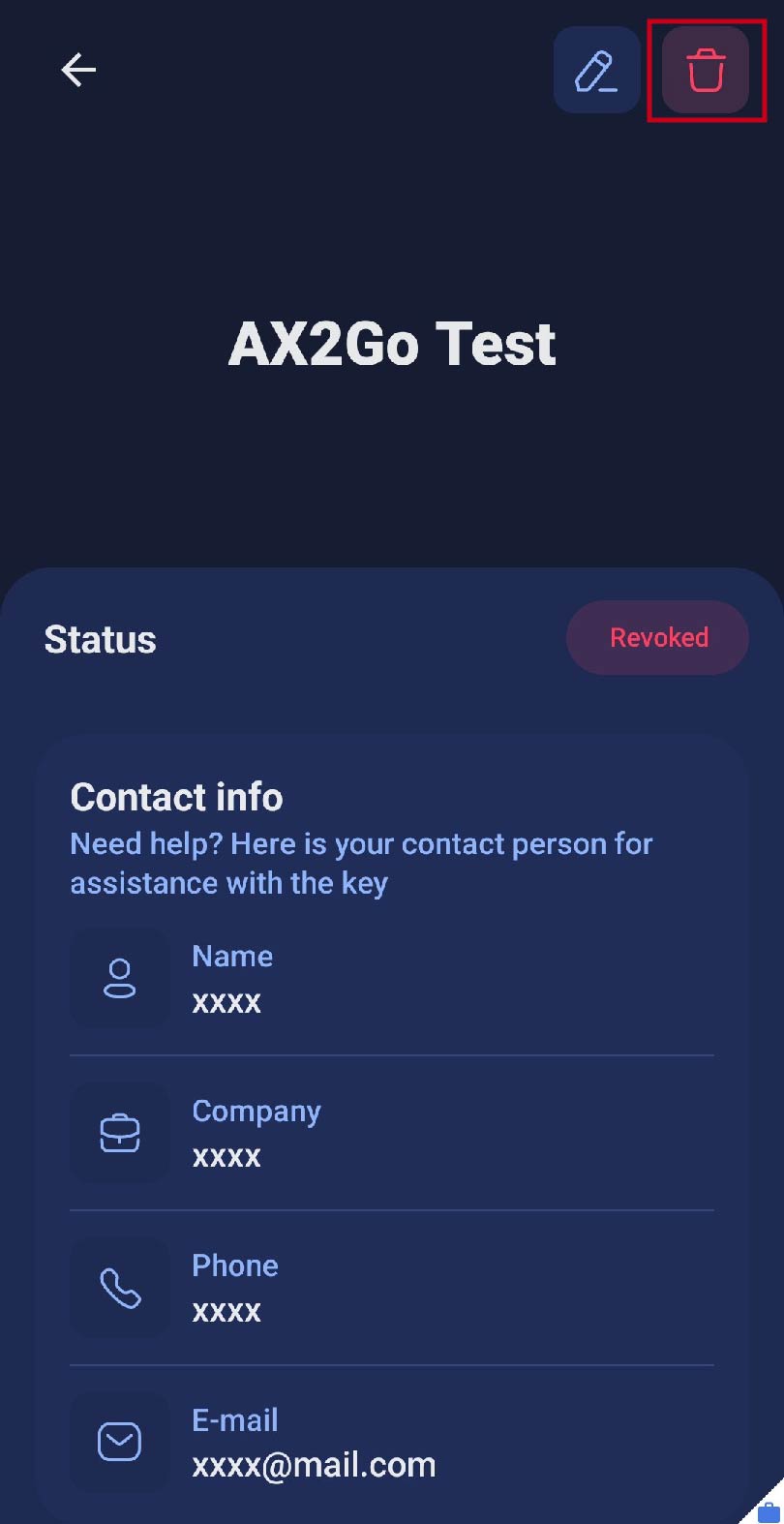 The locking system administrator can also revoke your key. If this should happen, you can also see this in your AX2Go app.