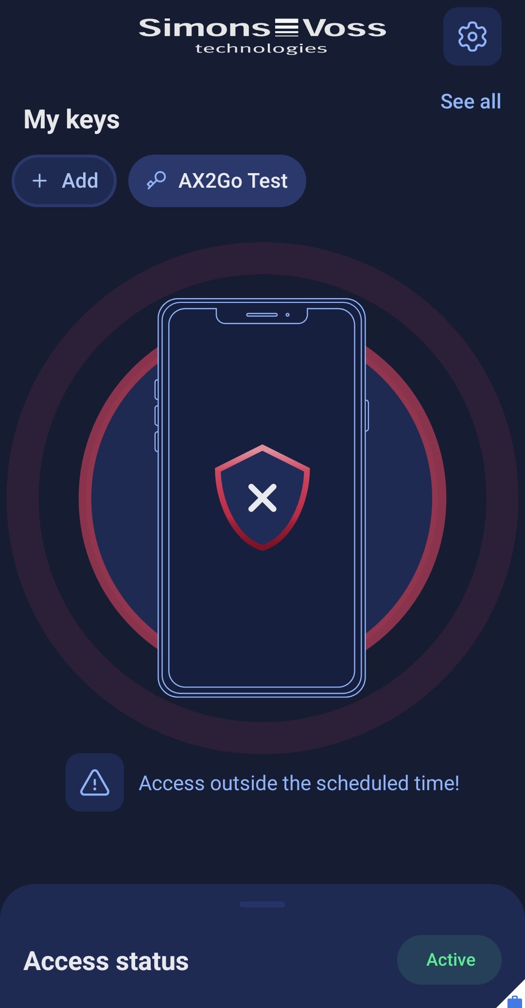 The locking system administrator can assign you to a specific time group, i.e. you can only open the locking device at certain times. If you try to open the locking device outside the time group assigned to you, access will be denied and you will receive this message: