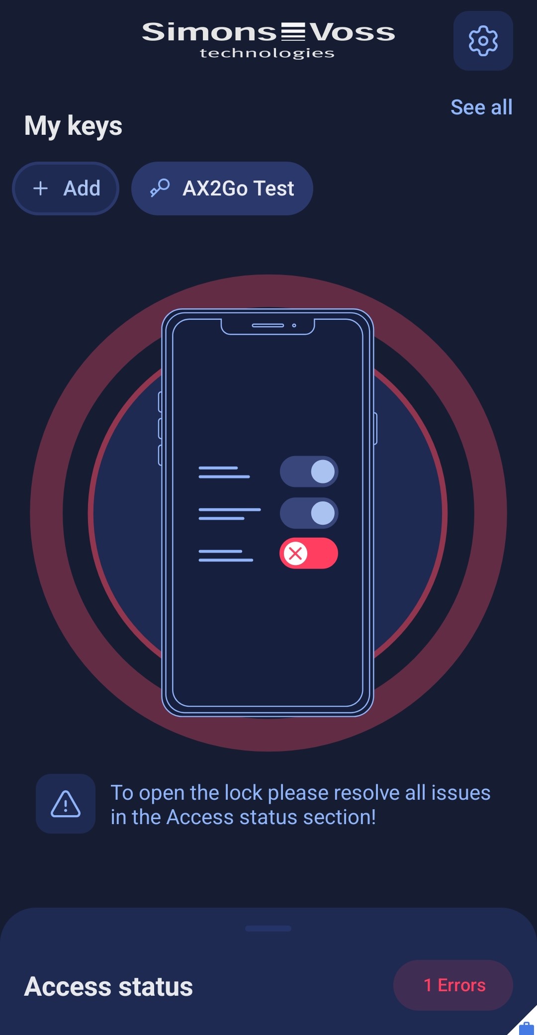 If an error occurs, you will be unable to open the locking device and access will be denied. To use the AX2Go app again, you will need resolve all issues in the Access status section.