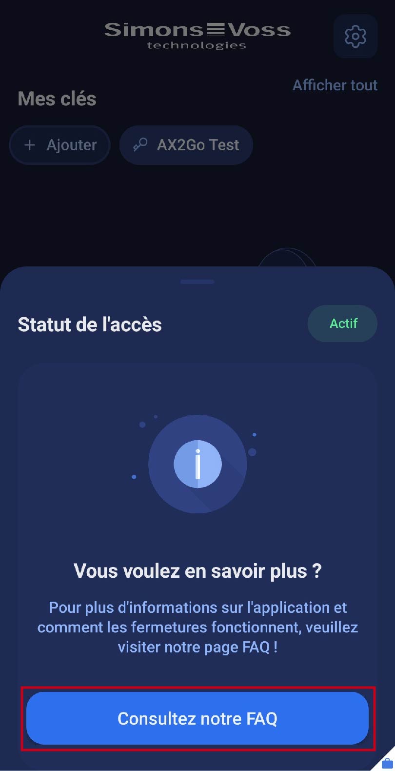 Pour la FAQ, la déclaration de confidentialité et le contrat de licence d’utilisateur final, vous êtes redirigé vers la page Internet SimonsVoss correspondante.
