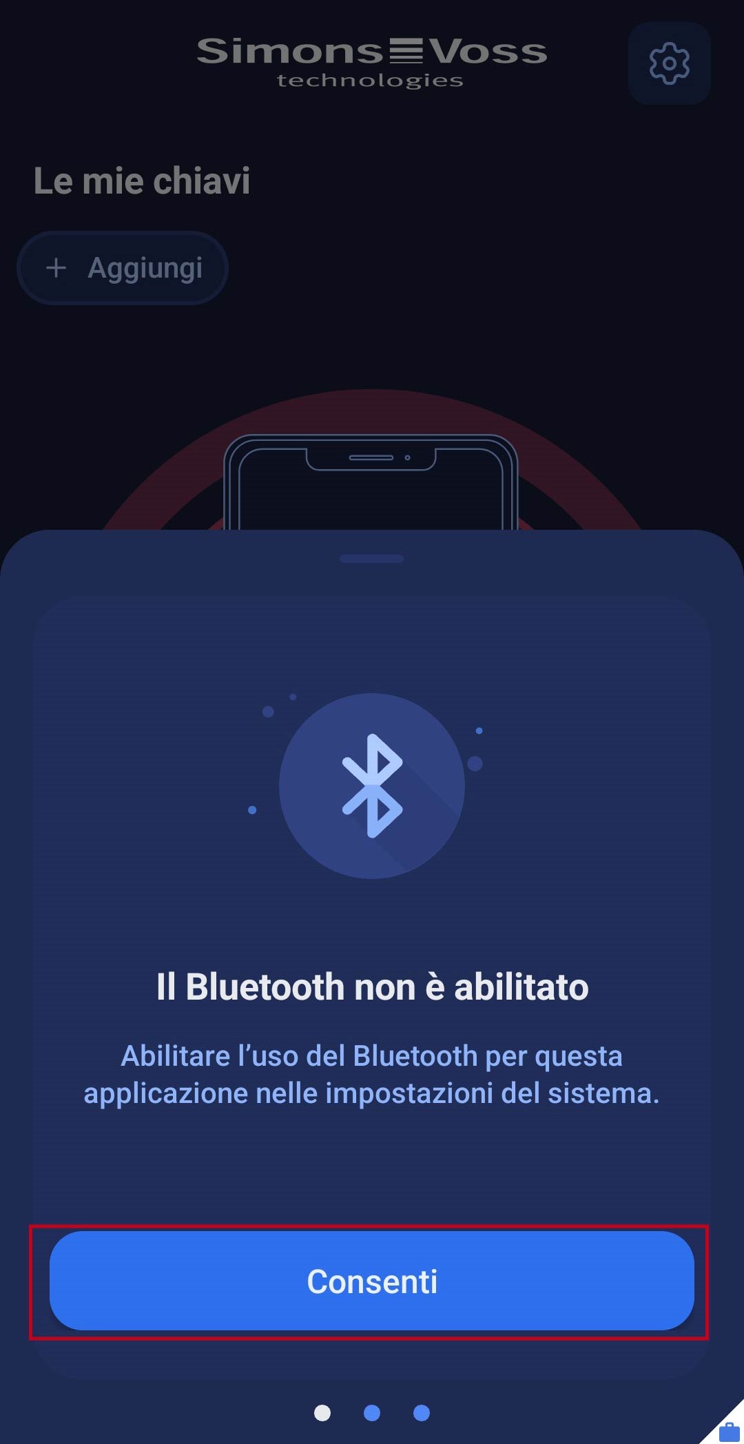 - Attivare l’utilizzo del Bluetooth. A tale scopo fare clic sul campo . Seguirà l’inoltro diretto alle impostazioni di sistema del proprio smartphone, dove si potrà abilitare l’utilizzo del Bluetooth.