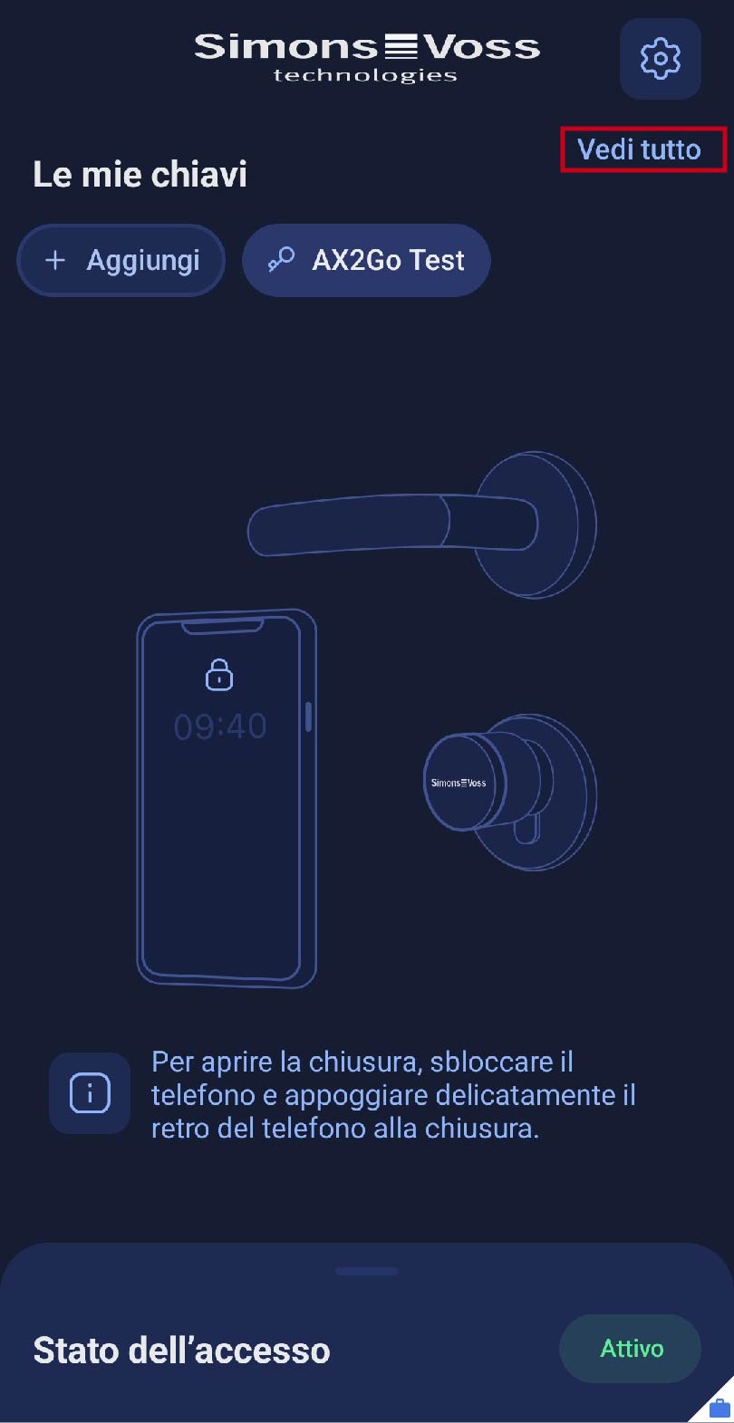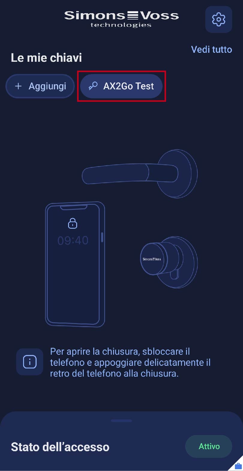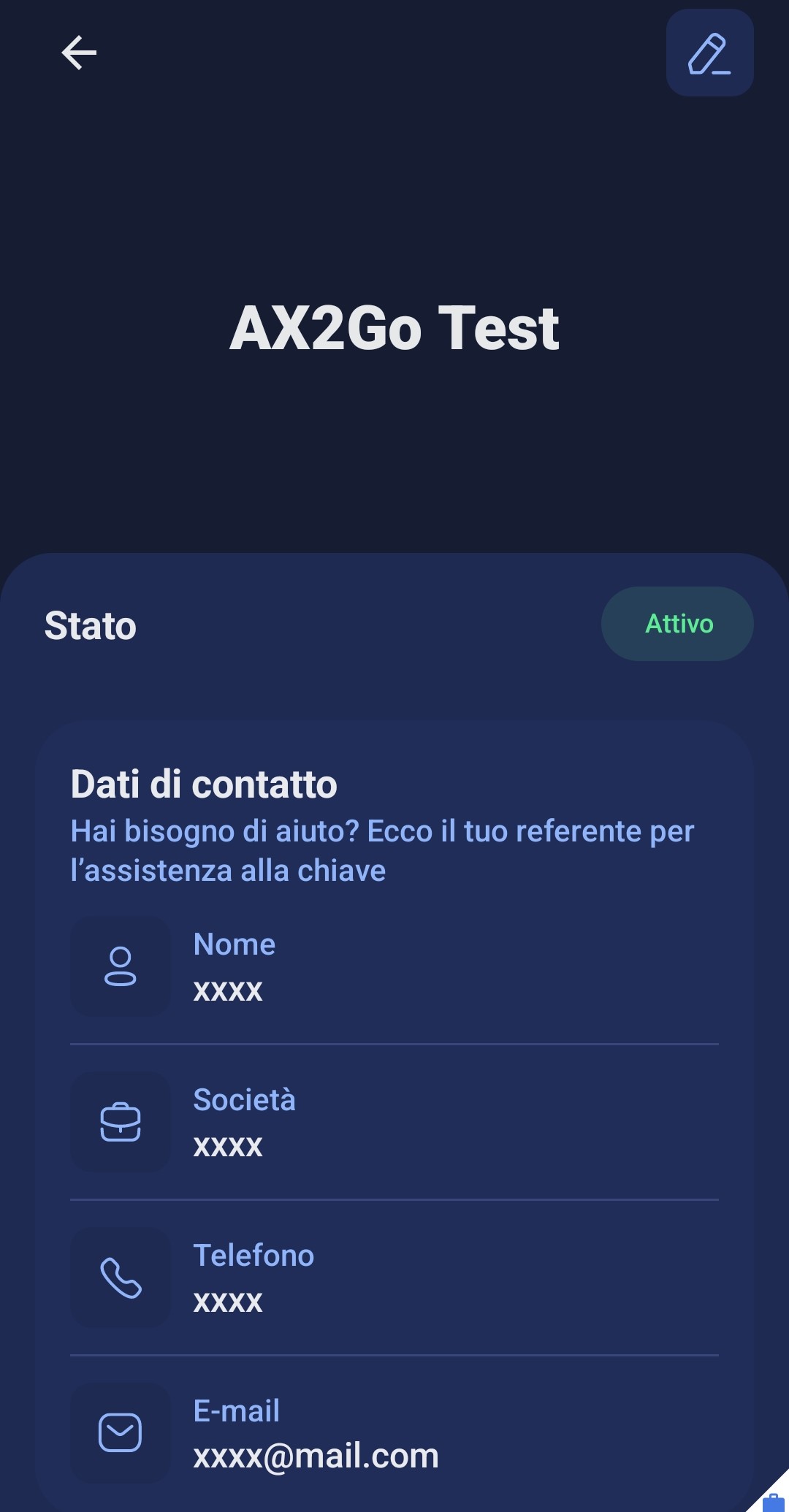 Nella app AX2Go è possibile richiamare le informazioni sulla propria chiave.
