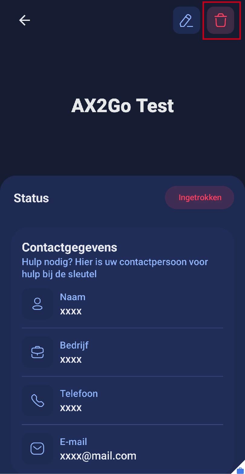 De sluitsysteembeheerder kan uw sleutel ook intrekken. Als dit gebeurt, kunt u dat ook zien in uw AX2Go app.