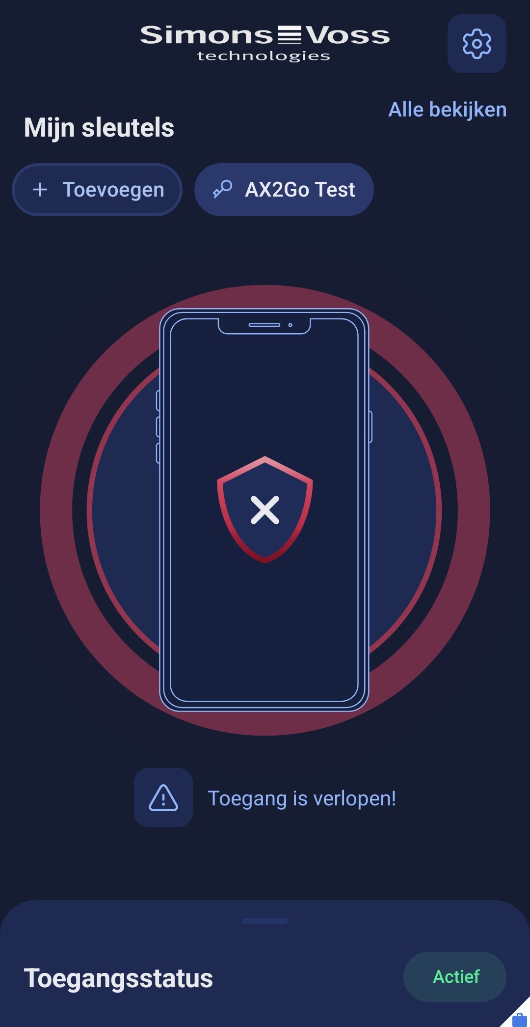 De beheerder van het sluitsysteem kan voor uw AX2Go-sleutel een vervaldatum bepalen. Als u na deze vervaldatum probeert het sluitelement te openen, wordt de toegang geweigerd. Uw toegang is verstreken en u ontvangt deze melding: