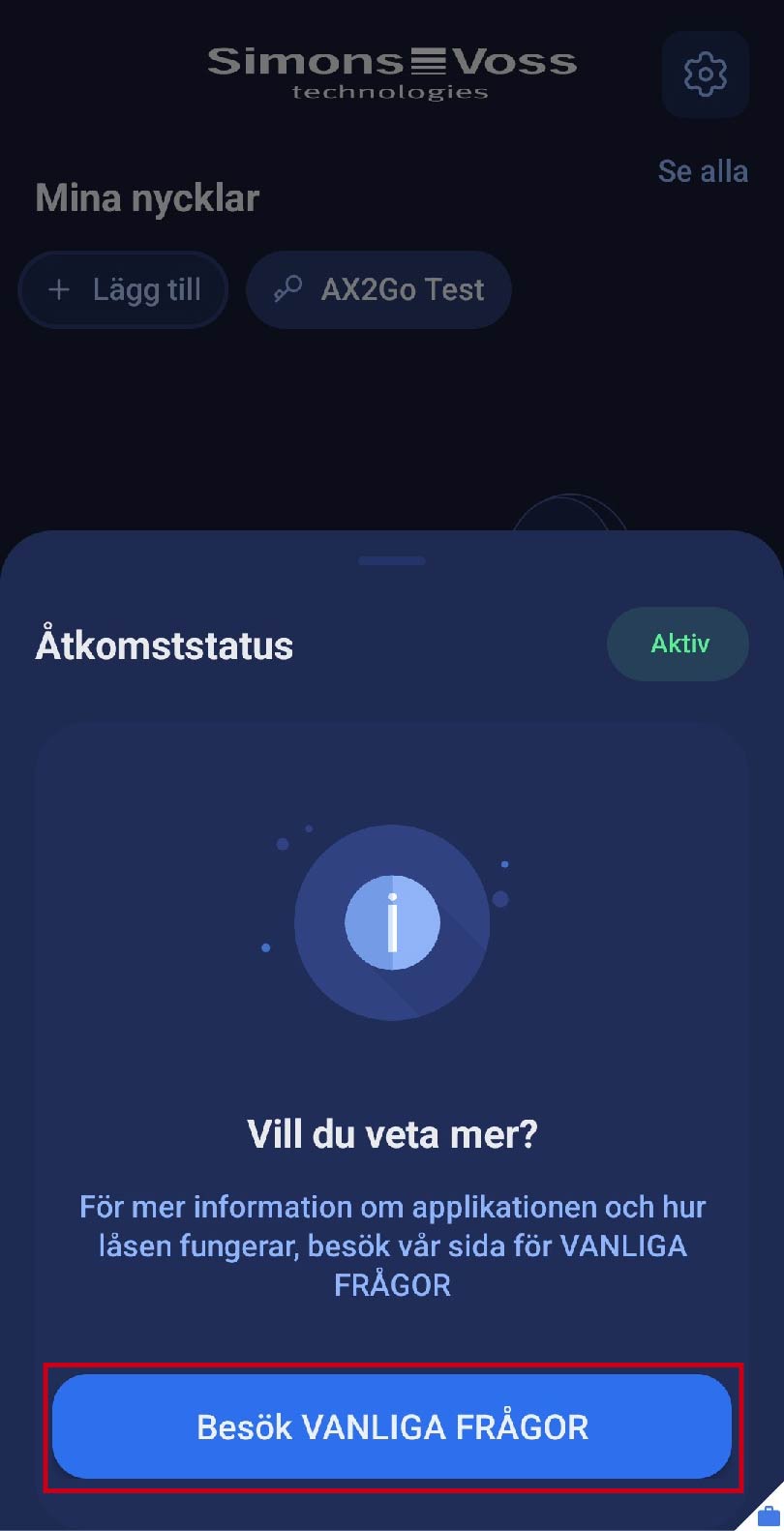 - Du länkas vidare till sidan med vanliga frågor hos SimonsVoss.
