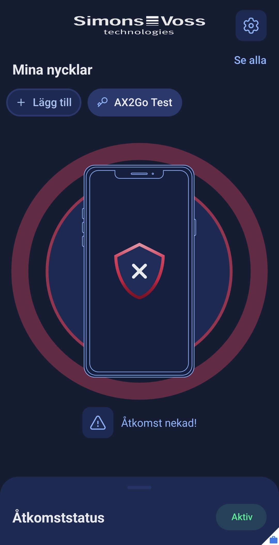 Dessutom kan ytterligare information visas, t.ex. ”Åtkomst utanför schemalagd tid!” eller ”Åtkomst har ännu inte aktiverats!”.