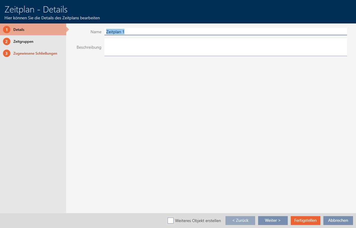 Hvis du allerede har oprettet dine tidsgrupper i en anden tidsplan: Indstil tidsgrupperne for denne tidsplan: - Tidsplan er oprettet, og vinduet til oprettelse af en tidsplan lukker. Fortsæt eventuelt med Tilføj identifikationsmedium til tidsgruppen og Tilføjelse af låse til tidsplan.