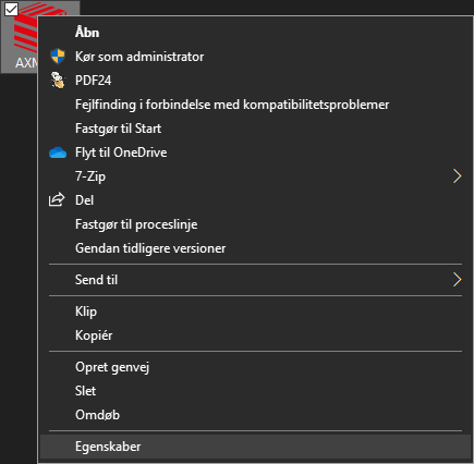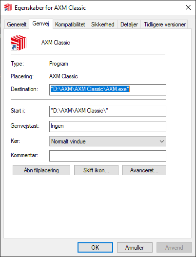 - Når AXM Classic fremover startes via denne sammenkobling, udføres AXM Classic automatisk som administrator.