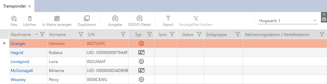 - I dropdown-menuen øverst til højre skiftes eventuelt til låseanlægget, der indeholder det ønskede identifikationsmediet.