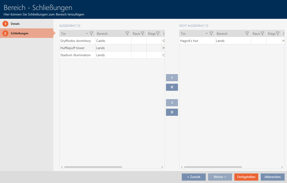 Tildeling af flere låse til et andet område (i områdets vindue) - AXM Classic