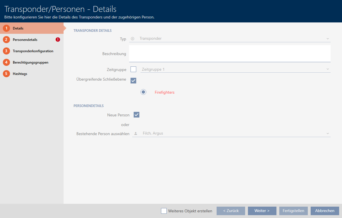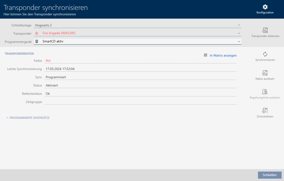 - Der Transponder wird in allen zugewiesenen Schließanlagen erstellt.