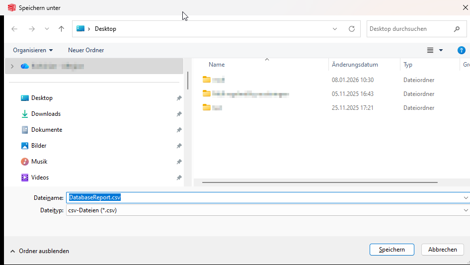- Speichern Sie den Datenbankbericht an einem Ort Ihrer Wahl.