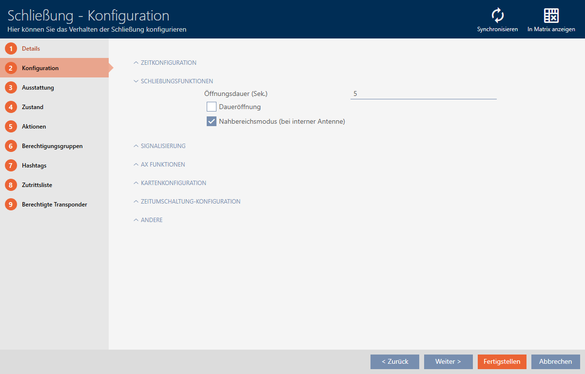 In der Werkseinstellung programmiert die AXM Classic Ihre Schließungen so, dass sie für 5 Sekunden einkuppeln. Ihnen stehen aber auch andere Einstellungen zur Verfügung: