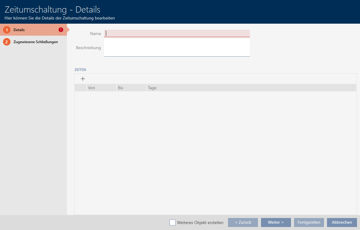 . - Fenster zum Erstellen einer Zeitumschaltung öffnet sich.
