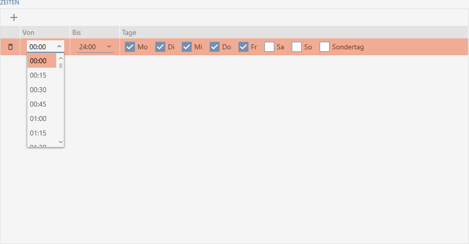 , um ein neues Intervall für Ihre Zeitumschaltung anzulegen. - Aktivieren Sie die Checkboxen der Wochentage, an denen die Schließung einkuppeln soll (, , , , , , , ).