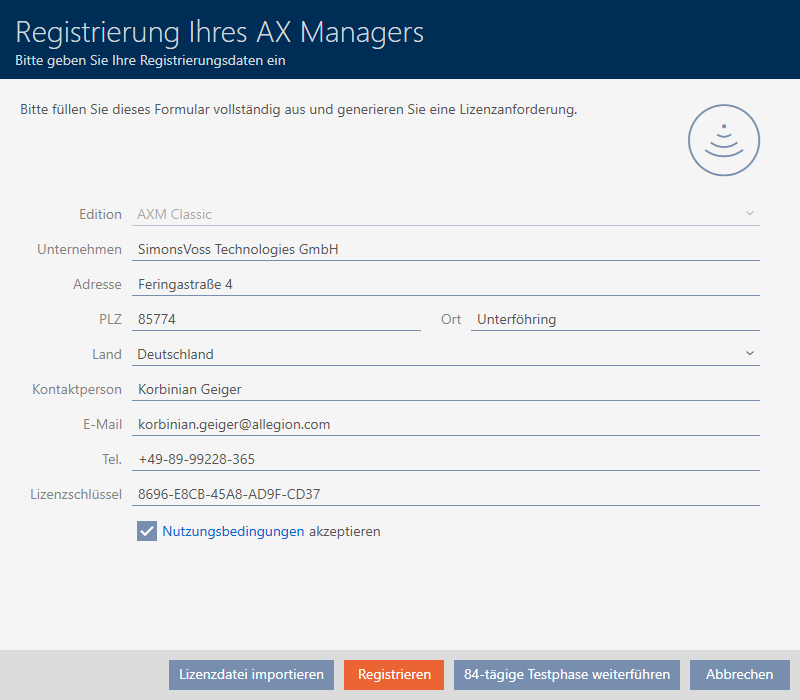 - SimonsVoss will check your licence request.
