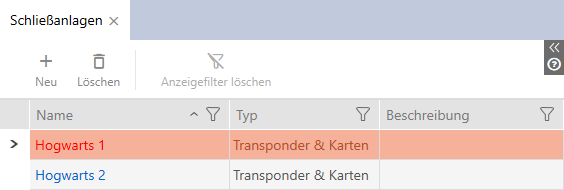 You have probably already created your first locking system with the wizard after starting your project (see First steps after a new installation). You can create additional locking systems in the tab: