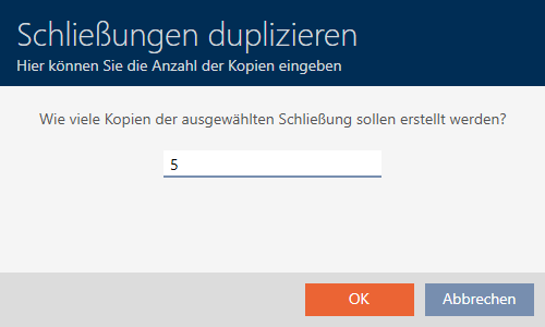 You can simply duplicate an existing locking device instead of creating a completely new one. During this process, AXM Classic also applies the properties, which can be changed in the AXM Classic.