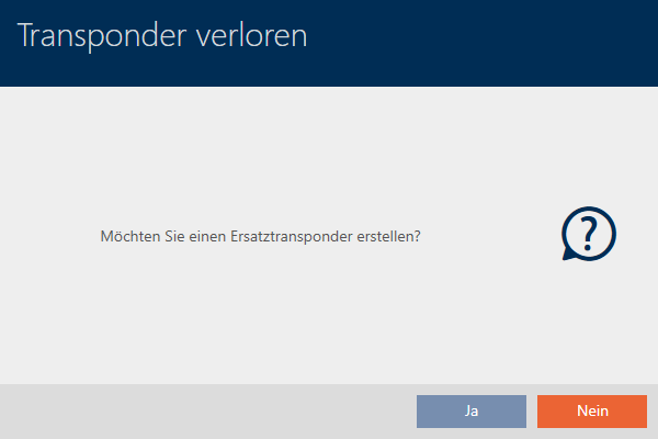 If you create a replacement transponder for a lost/stolen transponder, your AXM Classic automatically writes the block ID from the blocked transponder onto this replacement transponder.