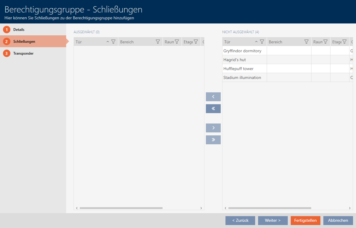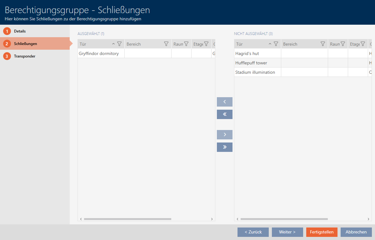 to move all locking devices. - The selected locking device in the left-hand column is added to the access level.