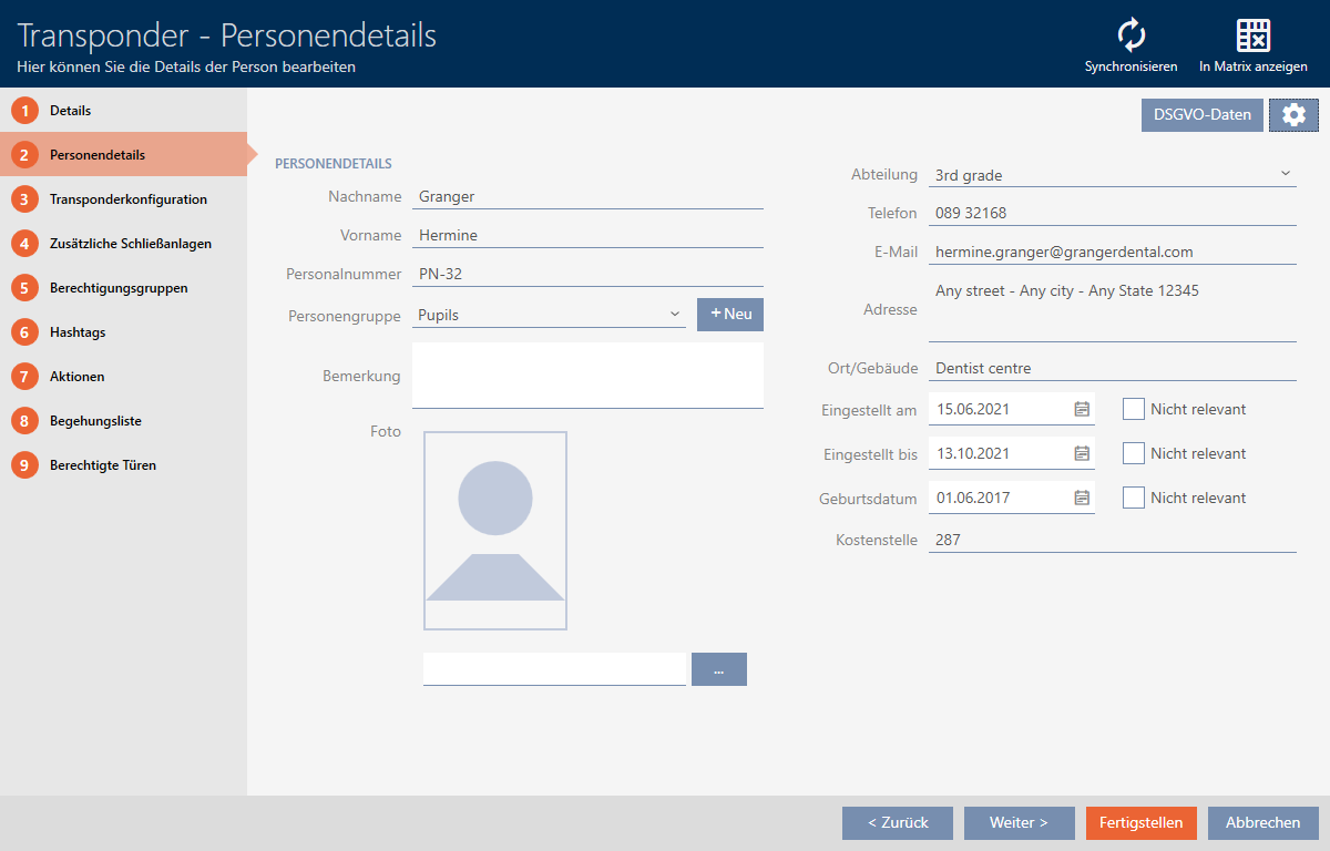 - Delete the content of the individual field or the entire person or their identification medium instead (see Deleting a card/transponder).