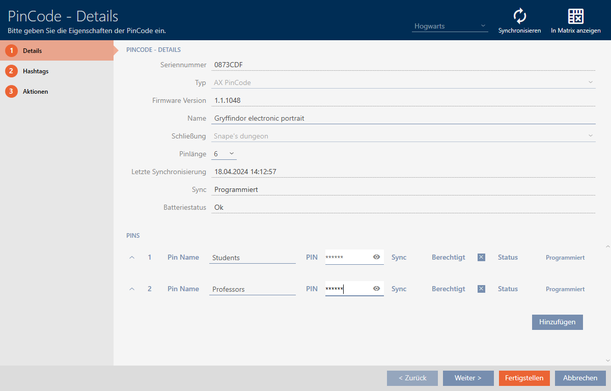 - Cliquez sur un code PIN quelconque pour ouvrir les détails de votre Clavier PinCode AX.
