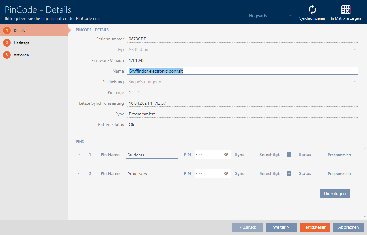 - Cliquez sur un code PIN quelconque pour ouvrir les détails de votre Clavier PinCode AX.