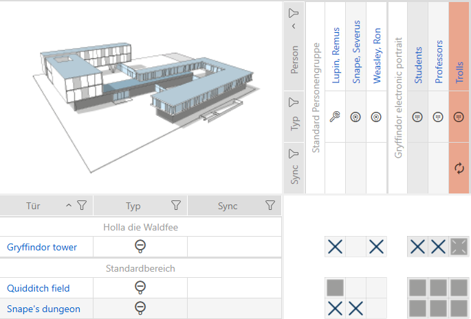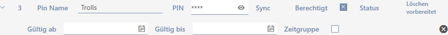 - Le code PIN supprimé est affiché dans la matrice avec l’autorisation grisée et le besoin de programmation.