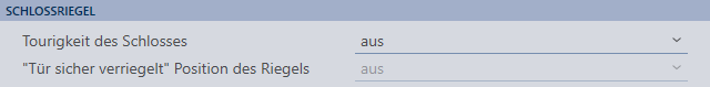 Position du pêne « Porte verrouillée de manière sûre » | Dans le cas de serrures encastrées à deux tours ou plus, il peut arriver que la porte soit verrouillée, mais que le pêne ne soit pas encore suffisamment sorti pour reposer de manière sûre dans l’ancrage de la porte. Dans ce cas, la porte est uniquement considérée comme La porte est verrouillée, mais pas comme La porte est verrouillée de manière sûre. Ce réglage vous permet de définir le nombre de tours nécessaires pour que le pêne soit suffisamment loin dans la porte et que le verrouillage soit considéré comme sûr. Les réglages paramètres disponibles dépendent de ce que vous avez indiqué pour Nombre de tours de la serrure (jusqu'à fermeture complète) :