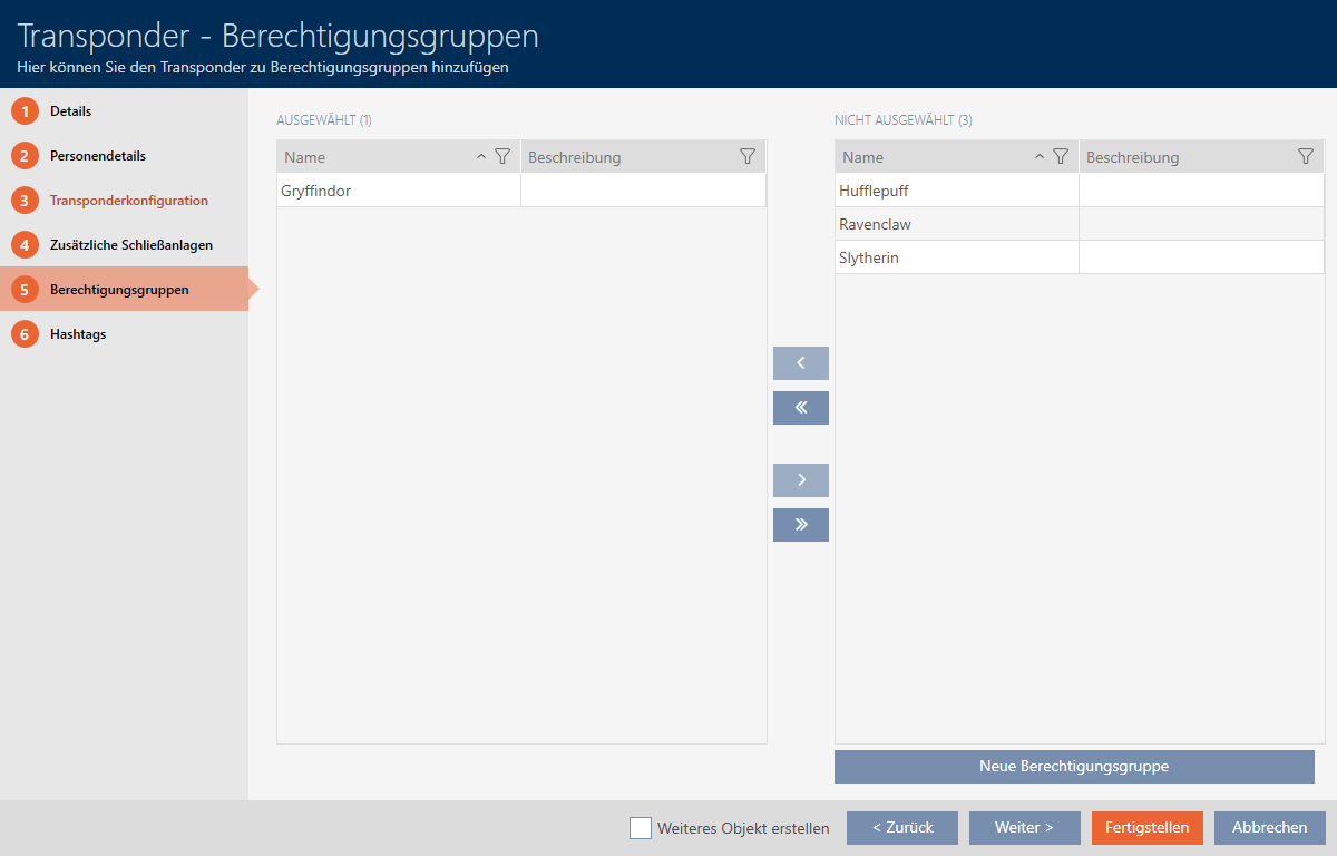 - Le cas échéant, activez les cartes ou les transpondeurs dans les propriétés du système de fermeture (voir Activer les identifiants).