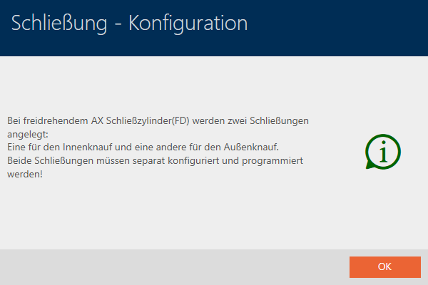 - AXM Classic crée un deuxième Digital Cylinder AX et coche automatiquement la case pour les deux. Les deux fermetures sont indépendantes l’une de l’autre et doivent être synchronisées séparément.