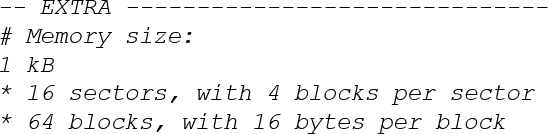 Exemple : MIFARE Classic EV1 4k : 4 Ko de mémoire, répartis entre les secteurs 0-31 à raison de 4 blocs chacun et entre les secteurs 32-39 à raison de 16 blocs chacun. Le secteur 16 est un secteur principal supplémentaire.