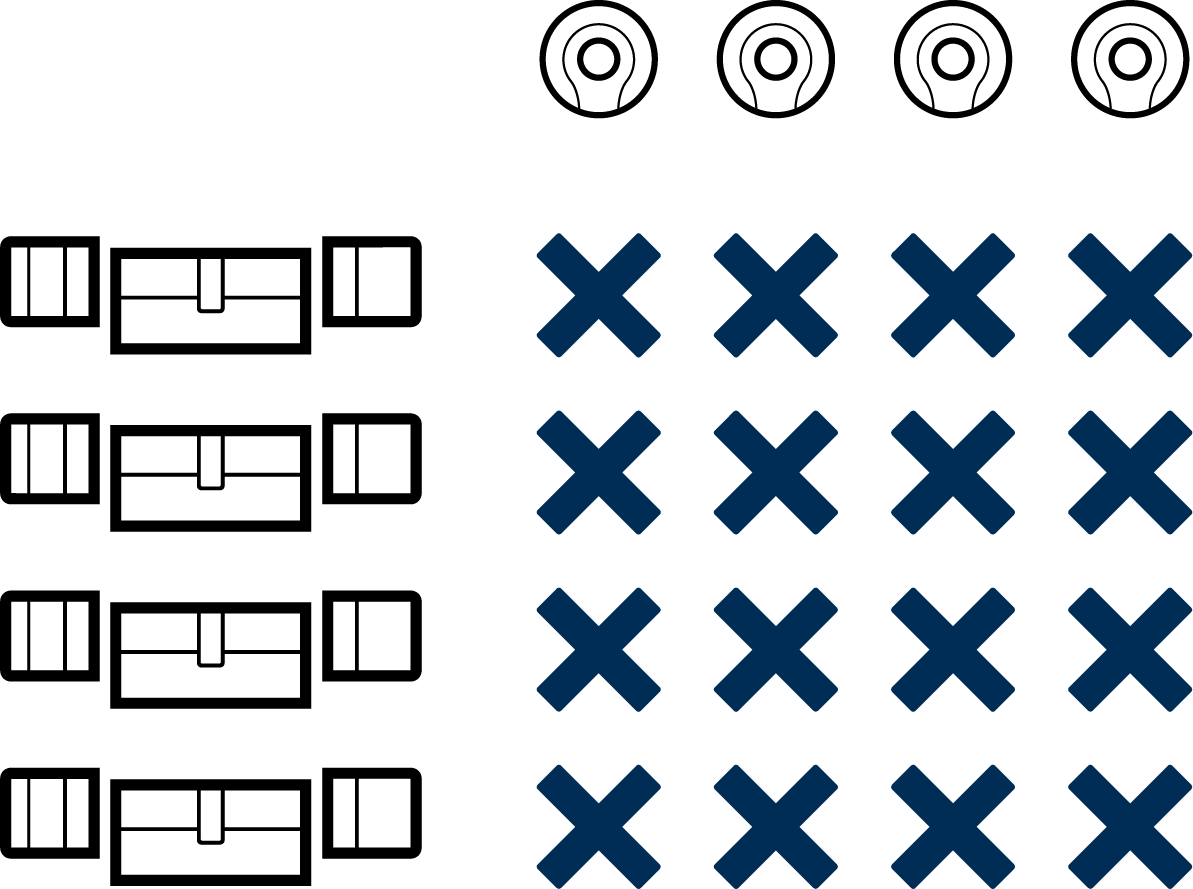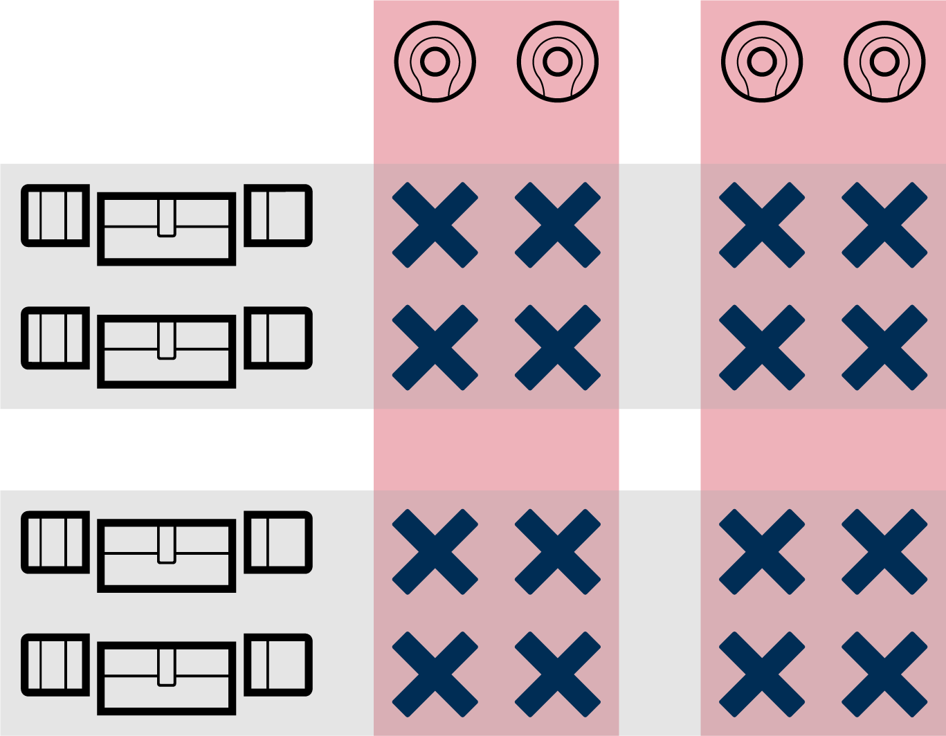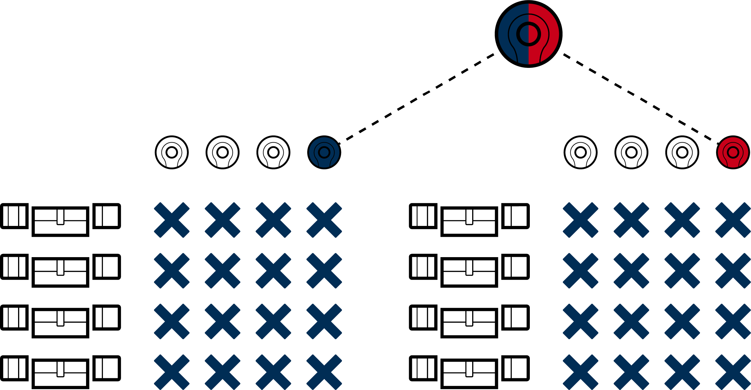 Vous avez même la possibilité d'utiliser un seul et même identifiant dans plusieurs plans de fermeture (voir Utiliser un identifiant dans plusieurs plans de fermeture). En principe, plusieurs plans de fermeture sont possibles en fonction de l'identifiant. Les plans de fermeture sont alors totalement indépendants les uns des autres et ne s'influencent pas mutuellement.