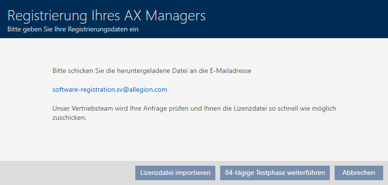 Dopo la prima installazione potete provare AXM Classic per 90 giorni. In seguito, è necessario registrare il software per continuare a usarlo.