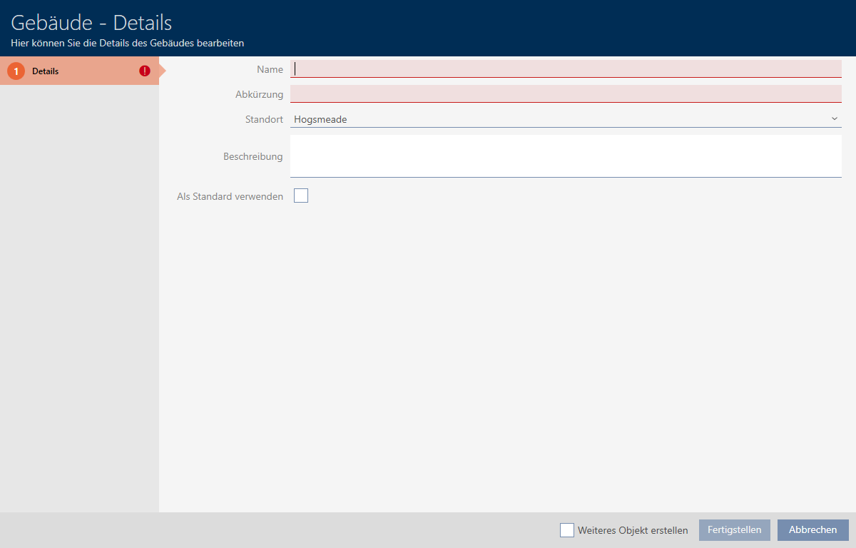 Nel database deve esserci almeno un edificio. L’AXM Classic crea quindi un edificio standard. Naturalmente potete creare altri edifici.