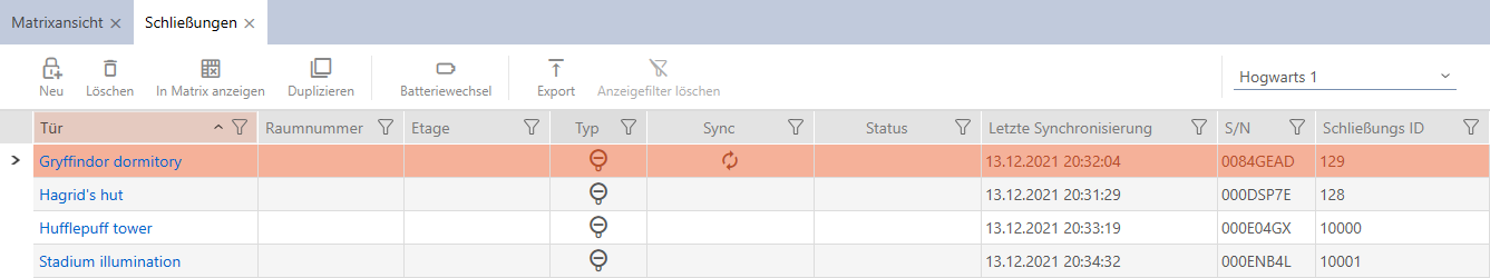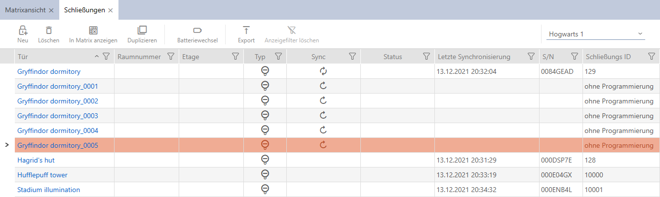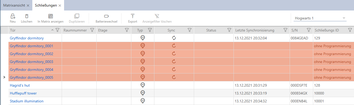 (vedere Ordinare e filtrare). - Evidenziate tutte le chiusure che desiderate cancellare (Strg+clic del mouse per una sola chiusura oppure Shift+clic del mouse per più chiusure).