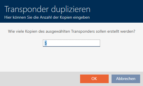 In plaats van een nieuw identificatiemedium aan te maken, kunt u ook gewoon een bestaand identificatiemedium dupliceren. De AXM Classic neemt daarbij ook de eigenschappen over die in de AXM Classic kunnen worden gewijzigd.