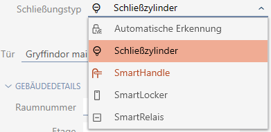 - Klik op het sluitelement waarvan u het type wilt wijzigen.
