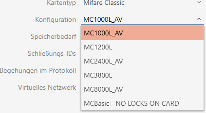 - toont het aantal mogelijke sluitelement-ID's voor deze kaart (AXM Classic wijst automatisch Lock-ID's toe, hierbij worden LID 0-127 voor interne functies gereserveerd). Voor achtergrondinformatie zie Kaarten en sluitielement-ID's.