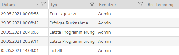 Det genomförda återlämnandet noteras i identifikationsmediets åtgärdslista (se även Planera och logga återlämning av transpondrar och kort).