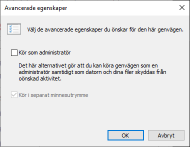 Därför rekommenderar SimonsVoss att ställa in egenskaperna för genvägen till AXM Classic så att AXM Classic alltid körs som administratör via den här genvägen.