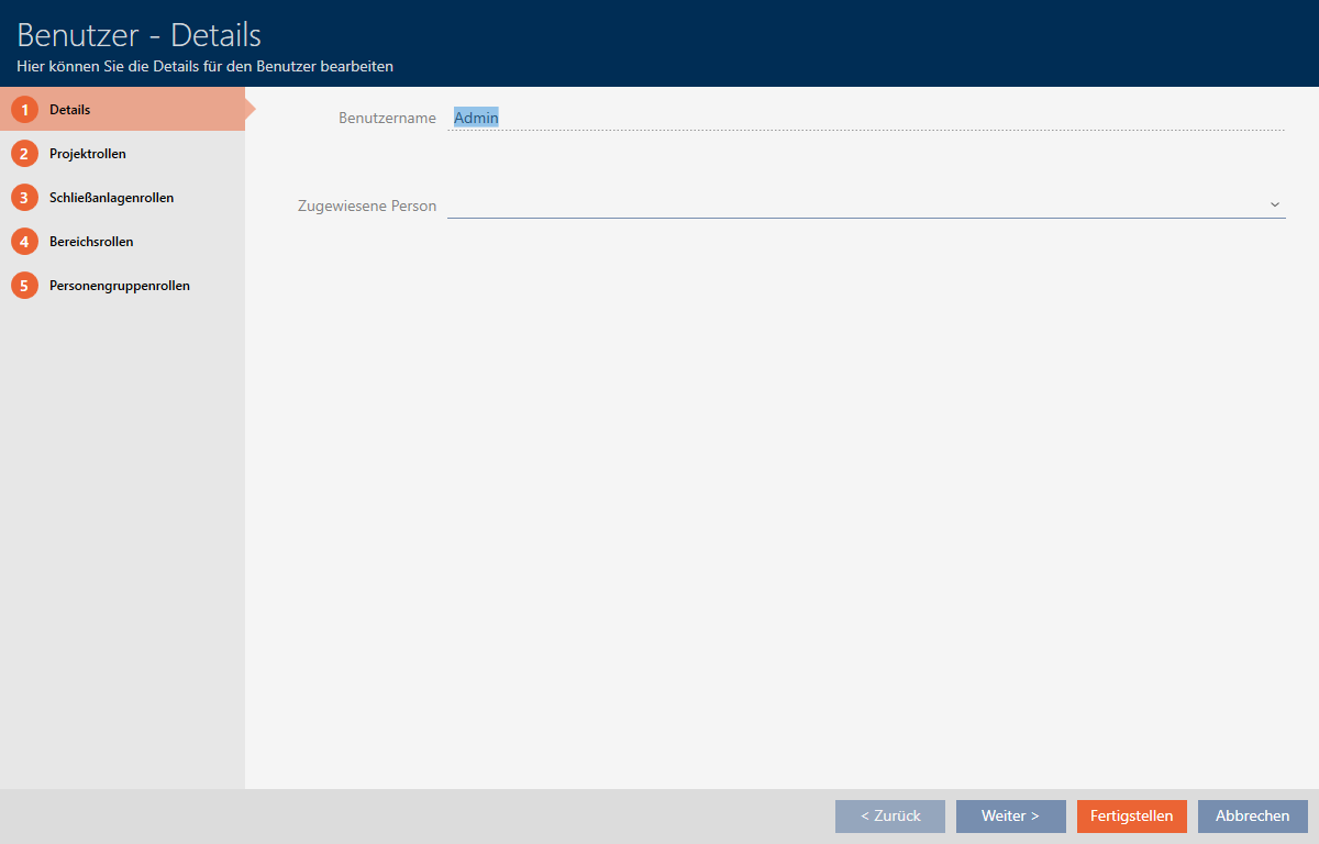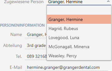 För att upprätthålla översikten över användare i AXM Classic kan du utse personer i ditt projekt till AXM-användare. En person kan tilldelas flera användare. Samtidigt övertas kontaktuppgifterna för den här personen direkt från databasen och visas automatiskt även för respektive användare.