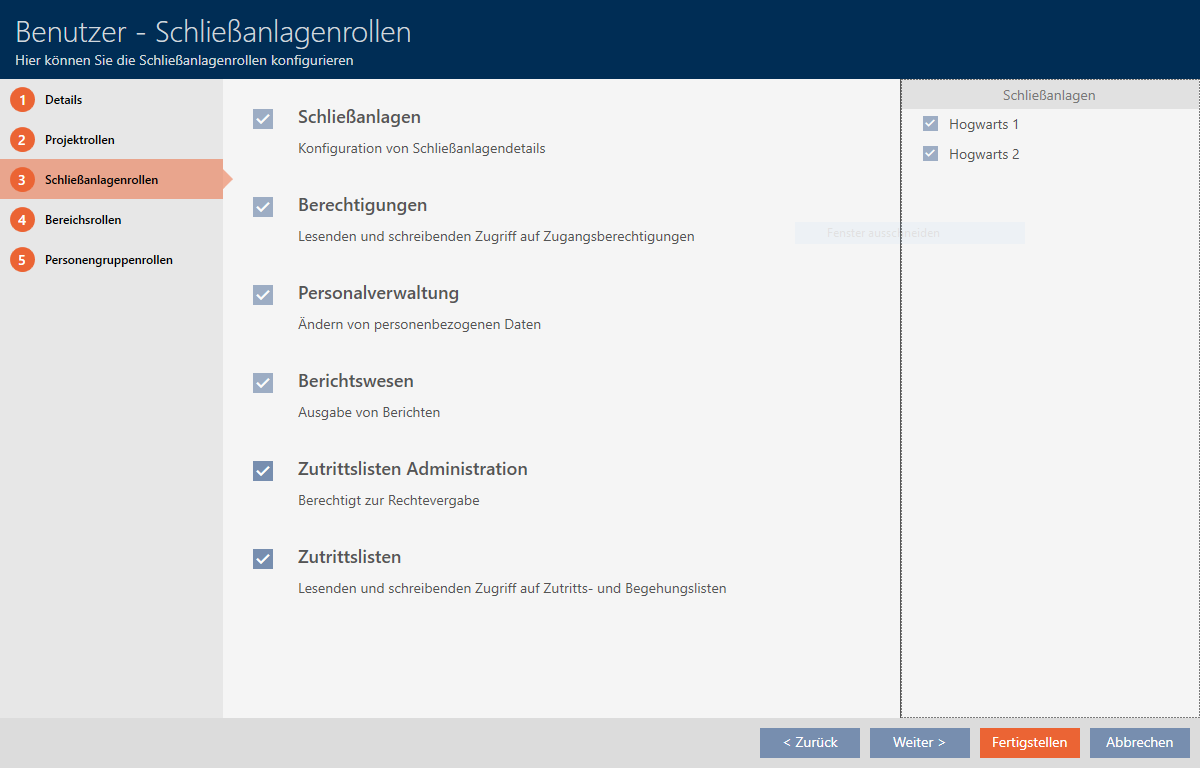 Användarroller är behörigheter för särskilda uppgiftsområden. Med användarroller kan du ställa in vilken användare som får göra vad i låssystemet. På så sätt kan du höja säkerheten i låssystemet.