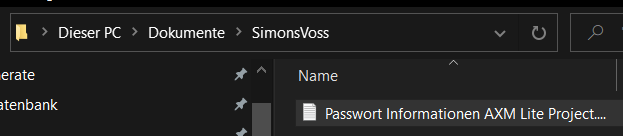 Låseanlæggets første adgangskode oprettes automatisk og gemmes i en tekstfil (Dokumenter\SimonsVoss).